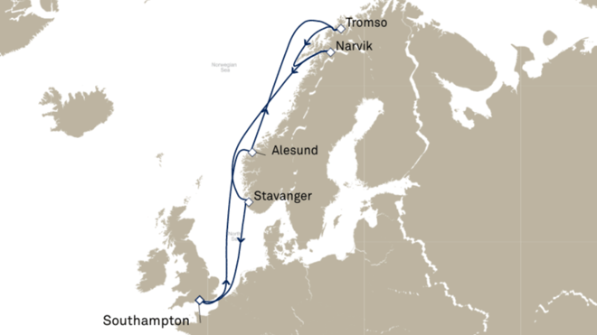 Immerse yourself in breathtaking scenes of emerald forests and snow-capped mountains from the Mount Aksla lookout in Alesund or savour the sweeping panoramic views from the Mount Narvikfjellet cable car in Narvik. Tromso, renowned for being one of the best places in the world for witnessing the Northern Lights, offers similarly sensational scenes from its Fjellheisen cable car leading up to Mount Floya. At both Tromso and Narvik Queen Elizabeth will anchor until the early hours of the next morning to offer guests plenty of time to keep a watchful eye for the Northern Lights.