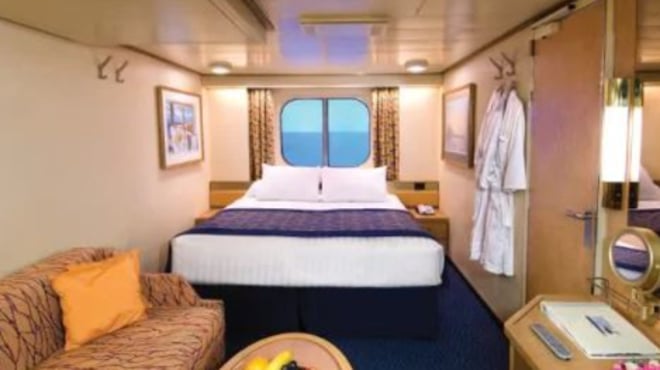 These expansive staterooms feature an ocean view and include two lower beds convertible to one queen-size bed. Signature Mariner's Dream™ bed with plush Euro-Top mattress, premium massage shower heads, plus a host of amenities.