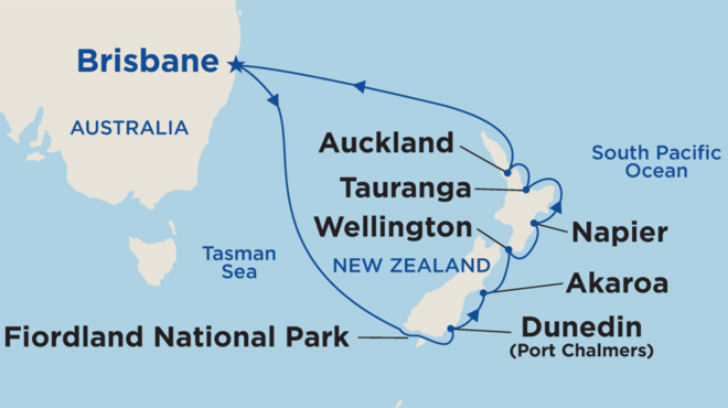 The next week will be spent cruising to ports including Dunedin, Wellington, Napier, Tauranga & Auckland before a return cruise across the ditch back to Brisbane.