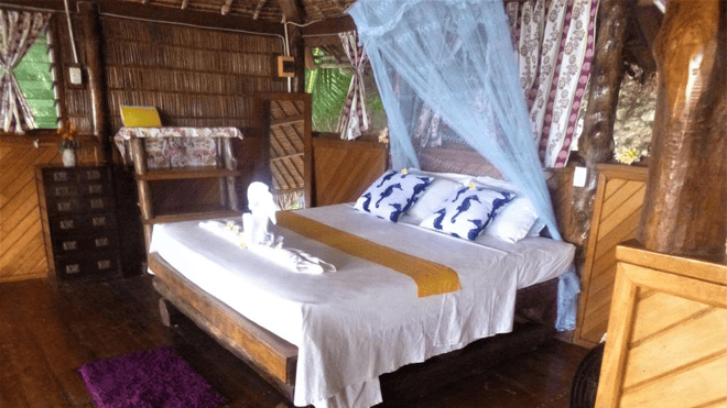 Your beachfront bungalow has been made using local leaf and hardwoods; the furniture is all handmade. Steps away from the island’s white sand beach, the bungalow boasts of scintillating views of the Pacific Ocean and other islands. Inside, the bungalow features a king-size bed, ensuite bathroom, open plan living space and a spacious balcony to while away island evenings.