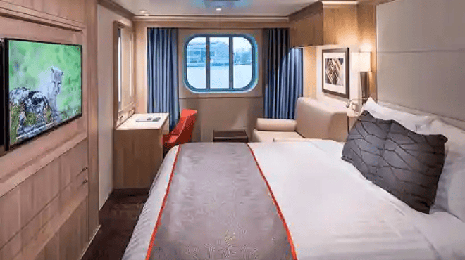 Approximately 175–282 sq. ft. These expansive staterooms include include two lower beds convertible to one queen-size bed—our Signature Mariner's Dream™ bed with plush Euro-Top mattresses, premium massage shower heads, a host of amenities and an ocean view. The configuration of staterooms may vary from the images shown.