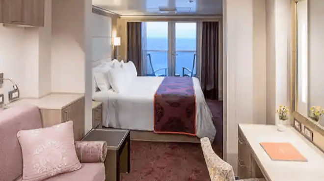 Approximately 228–405 sq. ft. including verandah. Filled with light from floor-to-ceiling windows overlooking a private verandah, these staterooms include a sitting area, two lower beds convertible to one queen-size bed—our signature Mariner's Dream™ bed with plush Euro-Top mattresses, and shower with premium massage showerheads. The configuration of staterooms may vary from the images shown.