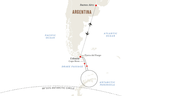 Your expedition cruise ends in Ushuaia, the main city in Tierra del Fuego, Argentina’s southernmost province. From here, you’ll take a flight back to Buenos Aires for an overnight stay. After breakfast the following day, you’ll be transferred to the airport in Buenos Aires to take your flight back to Australia or New Zealand. But that doesn’t have to be the end of your adventure. Why not join our optional Post-Programme before heading home.