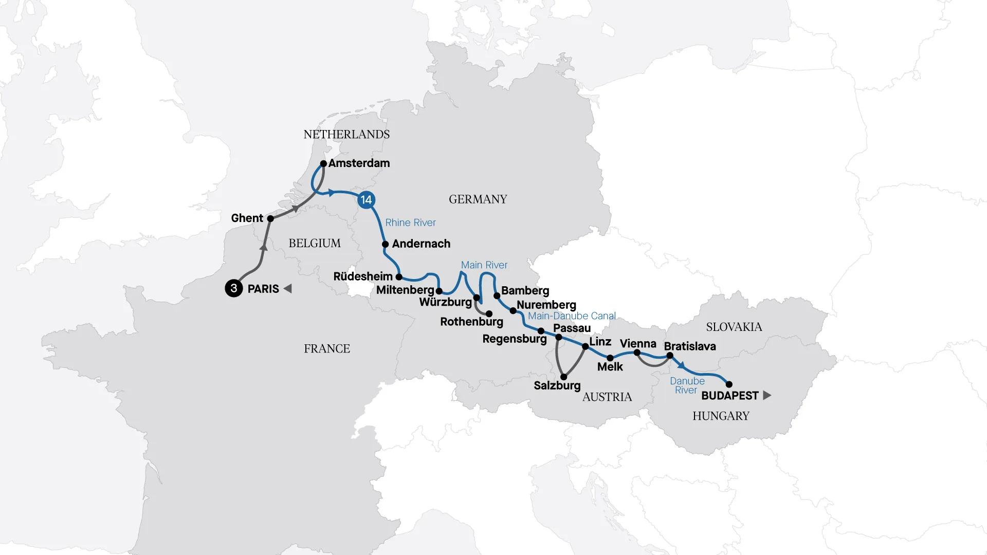 Experience a luxurious stay in Paris before embarking on a Magnificent Europe cruise from Amsterdam to Budapest. Glide along the Danube, Main and Rhine rivers through enchanting European landscapes and iconic cities as you indulge in all-inclusive cruising, world-class dining and unrivalled service.
