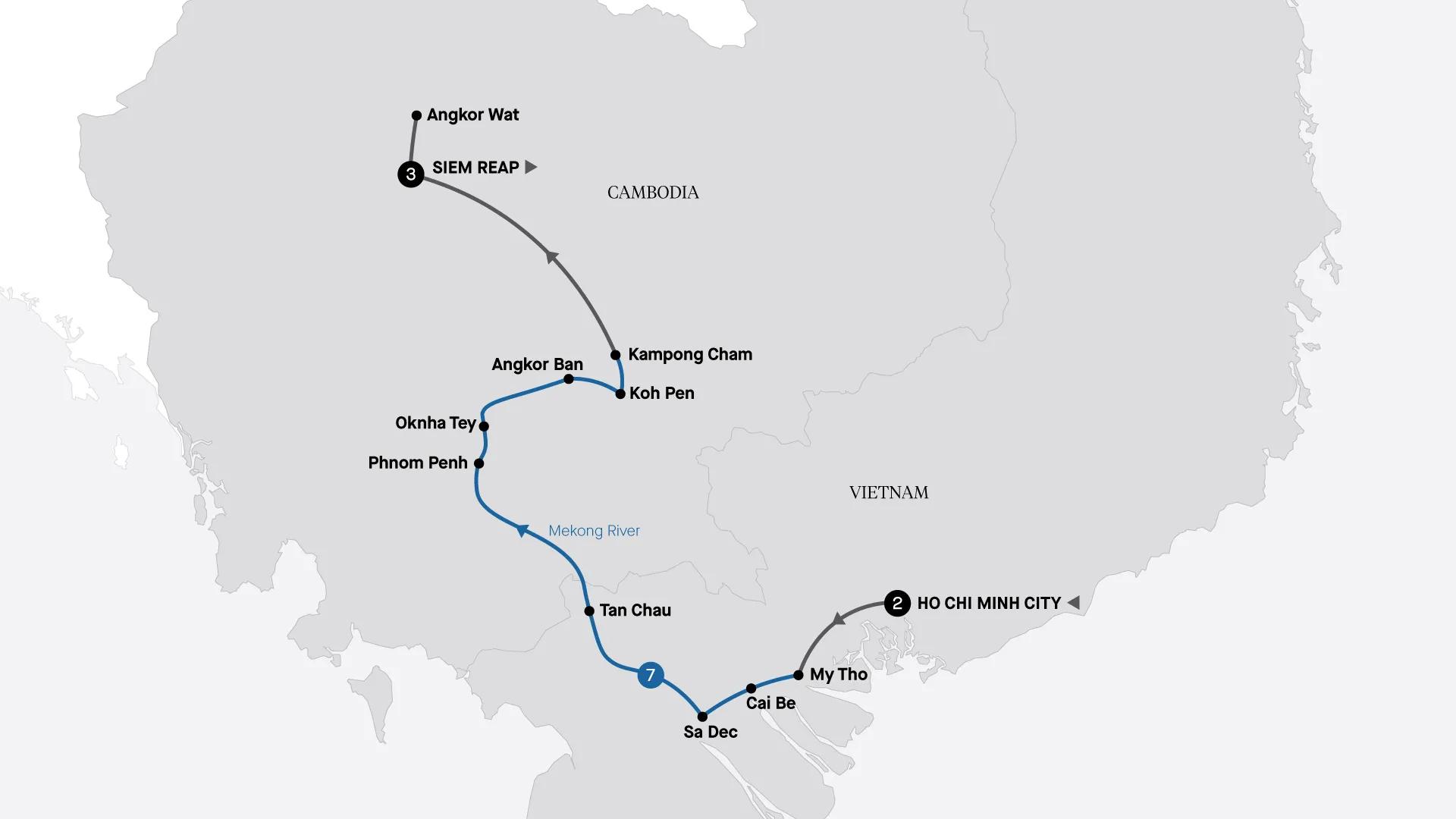 Spend seven nights aboard the luxury Mekong Serenity river ship as you explore the best of Vietnam and Cambodia. Discover Ho Chi Minh City’s history and culture, then join your cruise, visiting charming riverside villages and Cambodia’s capital, Phnom Penh, on your way to Siem Reap and the majestic Angkor Wat.