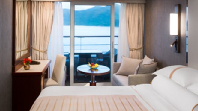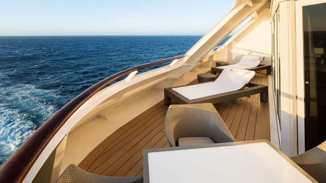 Verandah Stateroom: step outside to your private veranda and take in fresh sea breezes and ever-changing views. Thoughtful design, polished finishes, and attentive service create a relaxing retreat between immersive days ashore. Stateroom: 175 sq.ft. / 16.3 sqm | Veranda: 40 sq.ft. / 3.7 sqm.