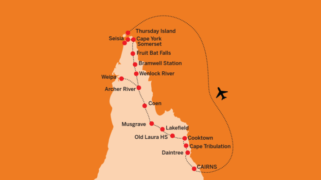 Join a great group of like-minded over-60s on an adventure north to the very tip of Queensland! Commencing and ending in Cairns, this roundtrip will show you the staggering variety of Tropical and Outback North Queensland. This itinerary includes the mining town of Weipa, a stay at a true blue Aussie cattle station, historic Cooktown (where Captain James Cook landed the Endeavour), and the prehistoric landscapes of Cape York - full of gigantic termite mounds, crystal clear creeks and unique plant life.