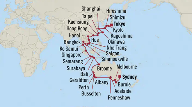 Departing from Tokyo 29 October 2023 and Disembarking in Sydney 21 December 2023