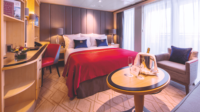 Your primely-located and beautifully designed suite, one of the largest on board will be your own private enclave of luxury for the voyage and comes complete with an inclusive mini-bar that will be restocked to your taste every day.