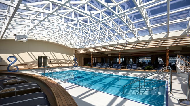 This ship carries 3,560 guests in refined luxury. It is most famous for the SeaWalk, a dramatic glass-bottomed walkway extending 28 feet over the ship's edge, and the Hollywood Conservatory, a serene, glass-enclosed indoor garden that provides a climate-controlled sanctuary with stunning ocean views.