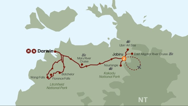 Explore the highlights of Australia’s iconic Top End on this fully accommodated short escape from Darwin, showcasing the very best of Kakadu National Park and beyond. Journey through World Heritage–listed landscapes as you cruise the wildlife-rich Mary River, soar above ancient escarpments and floodplains on a scenic flight, and discover remarkable Aboriginal rock art at Ubirr and Nourlangie. Along the way, encounter dramatic wetlands, saltwater crocodiles and sweeping vistas, brought to life by expert local guides.