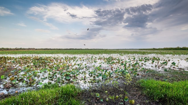 We depart Kakadu along the Arnhem Highway and travel through the Mary River National Park. Board a scenic cruise to discover the vast floodplains and wetlands teeming with birdlife and home to one of the highest concentrations of saltwater crocodiles in the world.