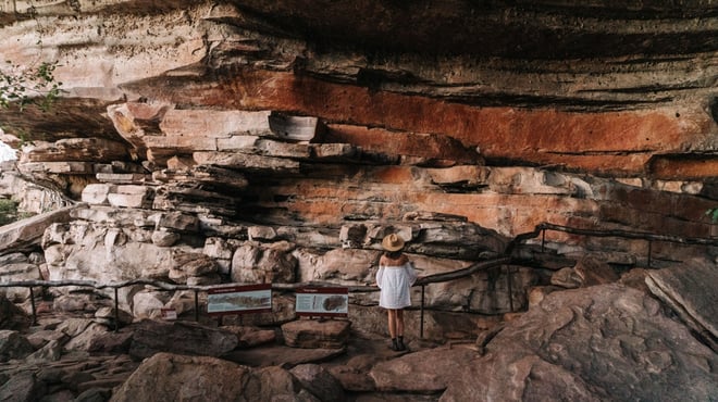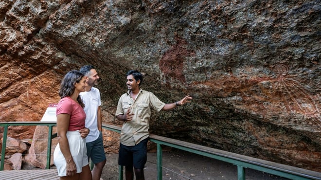 Then head to the East Alligator River for a cultural cruise hosted by local Indigenous guides, who share insight into traditional land management and stories of the region. Afterwards, we explore Ubirr, one of Kakadu's most iconic rock art galleries, with two short walks available to view extraordinary Aboriginal rock art dating back thousands of years. Return to your hotel to unwind before dinner, reflecting on the adventures of the day. Meals: B.L.D
