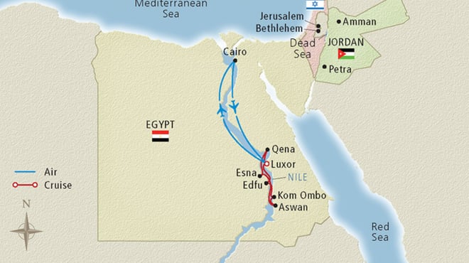 After breakfast, check out of your hotel and fly to your embarkation city. Luxor is set on the east bank of the Nile River and once served as the capital of Egypt’s New Kingdom. Today, it is a UNESCO World Heritage Site lined with beautiful colonial hotels and some of the world’s most ancient and significant ruins. Many consider this city, watched over by graceful single-sailed feluccas plying the Nile, one of the world’s great open air museums. The sprawling Temples of Luxor and Karnak on the east bank are linked by the ancient Avenue of the Sphinxes. On the west bank, in the Valley of the Kings, lie the tombs of Egypt’s great pharaohs.