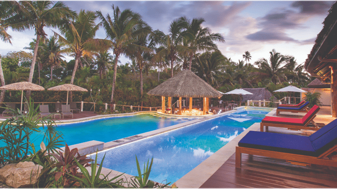 A 5-star offering along the Fiji’s famed Coral Coast, the resort is set on 40 acres of picture-perfect golden sand beach, swaying palms and lush tropical landscaped gardens.