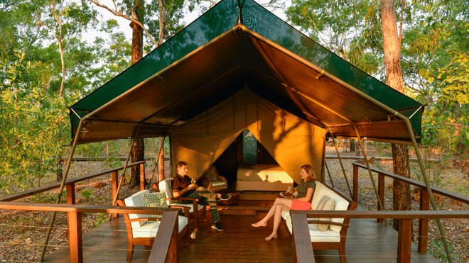 We spend the next two nights at Barramundi Lodge, which is owned and operated by Outback Spirit. With special permission from traditional owners, the lodge has exclusive fishing licenses for numerous remote waterways, including the Tomkinson and Liverpool Rivers. The lodge features 12 beautiful safari suites and a restaurant overlooking the floodplains below.