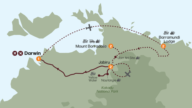 This tour departs from Darwin, speak with one of our team about flights to get you to Darwin.