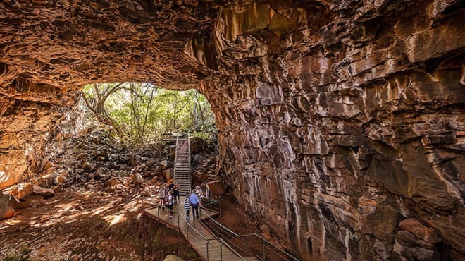This morning we travel via Einasleigh and Mount Surprise to the famous Undara Lava Tubes, a Savannah Guides Station. There's campfire entertainment after dinner before retiring to your accommodation in faithfully restored antique railway carriages or Pioneer cabins.