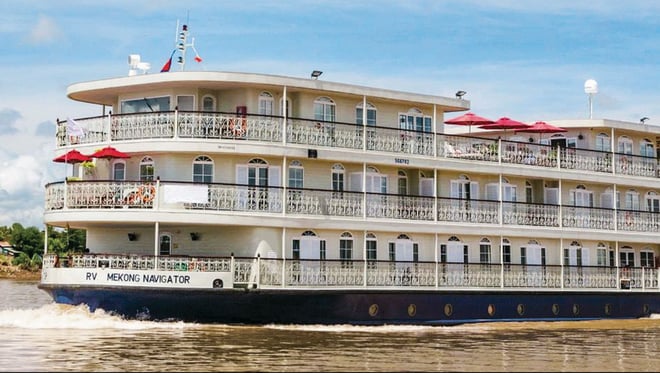 Debuting in January 2020, the Mekong Jewel is the most luxurious ship on the Mekong River. This all-suite Super ShipTM vessel includes two dining venues: one main restaurant and an al fresco eatery on the upper deck. The Mekong Jewel replaces the Mekong Navigator and was constructed with sustainable, eco-friendly materials, and features a swimming pool, spa, sauna and steam room, gym, hair salon, nail bar, two lounges, and a library.