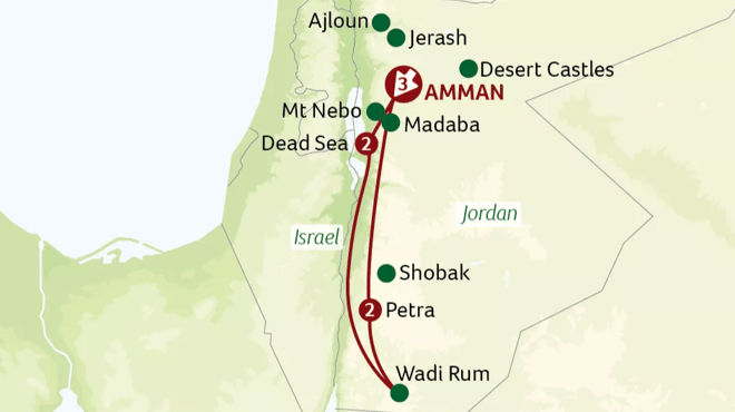 Today we visit Mount Nebo to stand on the spot from which Moses is believed to have surveyed the Promised Land. We continue to Madaba, once a flourishing Byzantine town, and the Greek Orthodox Church with its fascinating 6th-century mosaic map. We end our day at the impressive Shobak Crusader Castle, before arriving in Petra as the evening rolls in.