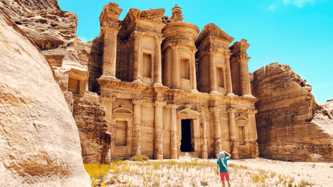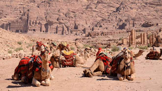 We’re up early for a tour of the spectacular ancient ‘Rose-Red City' of Petra, entering the city on foot. Hidden by the golden desert sand for centuries, this is one of the world’s most treasured UNESCO sites. The highlights are the spectacular Treasury and the Monastery, both of which have been hewn out of solid rock. Most of this unique city was built by the Nabataean Arabs in the 6th and 5th centuries BC. It was an important link in the caravan routes, added to by the Romans who carved out a huge theatre and possibly the spectacular classical façade of the Treasury.
