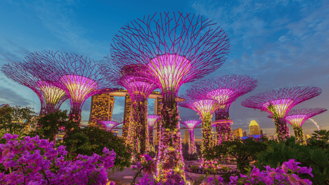 Advanced, airy, and elevated, Singapore is a spectacular, futuristic vision of utopian city life. A healthy population of almost six million calls it home, but this is a city designed with space to breathe, gorgeous outdoor parks, massive indoor greenhouses, and beautiful recreational spaces spread between the City of Gardens' skyscrapers and soaring structures. Once a quiet fishing village, now a glistening island city-state and an international beacon of science, education, and technology. Singapore is almost intimidatingly clean - and the hyper-efficient public transport system whips residents and visitors across the city's neighborhoods in a heartbeat. Glorious fountains and audacious skyscrapers loom up - nodding to traditional feng shui beliefs - and putting on dazzling illuminated displays after dark. The lush green botanical gardens are a spectacular UNESCO World Heritage Site, covering 52 hectares and decorated with impressive colorful orchids. Or breathe in more of the freshest air by heading up to wander the canopy-strung bridges of MacRitchie Reservoir Park. Head for the iconic Marina Bay - a landmark of the city crowned by three interconnected towers, which watch out over island-sprinkled waters. Jaunt between Little India and the atmospheric Chinatown in minutes, where beautiful temples - like the Chinese Thian Hock Keng Temple and Hindu Sri Mariamman Temple add rich cultural intrigue. Singapore's cuisine is a mouthwatering fusion of its Indian, Chinese, Indonesian, and Malay influences, taking and enhancing the best of each. Enjoy dishes in towering restaurants, or toast the glowing skyline with the city's eponymous gin-soaked cocktail - a Singapore Sling.