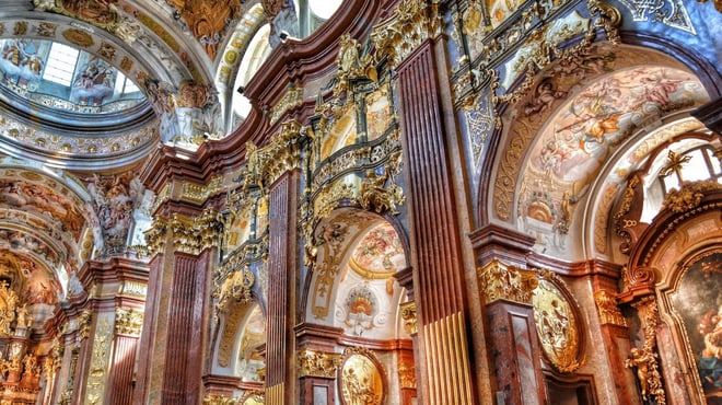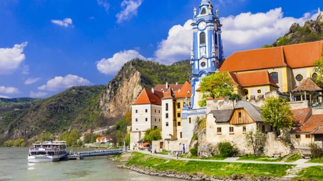 After crossing into Austria, dock in Melk and join a guided tour of Melk Abbey. Since 1089, this Benedictine monastery has stood atop a rocky outcrop overlooking the Danube. Later, cruise through the picturesque Wachau Valley to Dürnstein, a town overlooked by the hilltop ruins of the castle where King Richard the Lionheart was imprisoned in the 12th century. Enjoy the afternoon free to explore the cobbled streets, townhouses and taverns, or perhaps join an optional regional wine tasting.