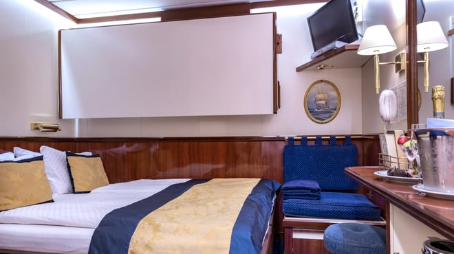 The most luxurious accommodation onboard, offering generous living space, picture windows, elegant furnishings, and premium amenities — perfect for those wanting a truly indulgent tall-ship experience.