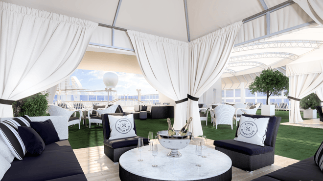 Suites: Nothing’s sweeter than some extra special treatment. Our large, light-filled suites are designed with ultimate comfort and style in mind. Stretch out in a spacious separate sitting area, sip Nespresso on your balcony, and enjoy priority shore tour reservations, embarkation and disembarkation, plus free laundry and loads of other benefits throughout your stay.