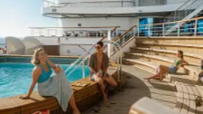 Mini-Suite with Balcony: Private balcony, separate sitting area, priority bookings for dining, spa and shore tours, priority embarkation, disembarkation, bathroom with shower over bath, flat screen TV, desk with chair, pillow concierge, laundry and shoe shine service, bathrobe, and slippers, twin single beds that convert into a queen bed, quad rooms feature a double sofa bed and access to Byron Beach Club.
