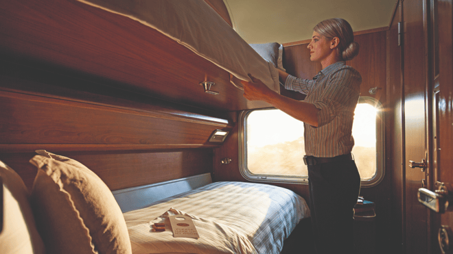 Smart casual attire is suggested for guests travelling in Platinum Service and Gold Service. Warm clothes are recommended for evenings onboard the train, as the air-conditioning can be cool. It is recommended that guests pack a hat, sunscreen and comfortable walking shoes for off-train touring. Sensible shoes are advisable for walking between carriages. Long, sturdy pants may be required for some Off Train Excursions.