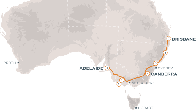 Departing Fridays, the Adelaide-Brisbane journey includes touring in The Grampians, Canberra and a special beachside dining experience on the Northern NSW Coast.