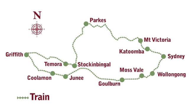 Coaches will return you to Temora Station, where lunch will be served in the dining carriage as the train continues along freight-only lines via Stockinbingal. This single-track route is shared with many freight trains, so some delays are likely.