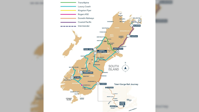 Tour the diverse and stunning landscapes of New Zealand's South Island by rail and luxury coach.