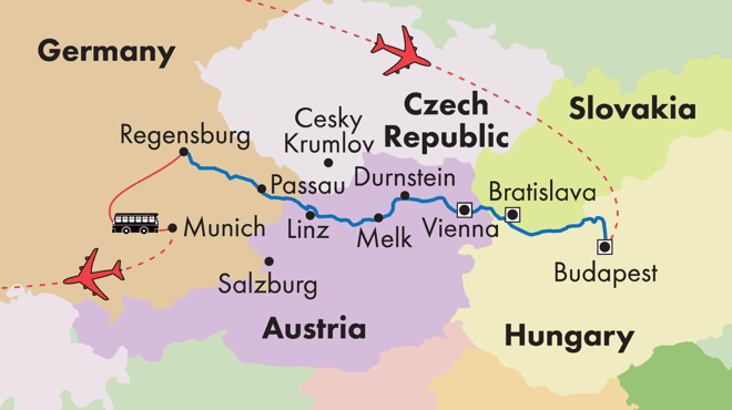 This morning, enjoy the tranquil scenery as the boat sails along the scenic Danube. In the late afternoon, arrive in Bratislava, the capital of Slovakia, a mix of modern and Baroque architecture. This capital city is among the youngest in Europe, yet retains a rich history dating back more than 2000 years. Walk along the cobblestone lanes of the historic town center; view St. Martin's Cathedral, coronation site of the Kings of Hungary, the 13th century Old Town Hall and the Franciscan church. Time to explore this colorful city on your own before returning to the ship for dinner. This evening, the ship will set sail to Vienna.