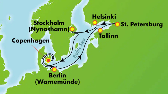 Explore the wonders of the Baltics on an exciting journey steeped in art, history and culture. With over 200 museums, magnificent architecture and world-renowned operas and ballet, there's plenty to see and do during a 2-day stop in St. Petersburg. In Helsinki, explore the dramatic coastline, visit famous cathedrals or enjoy a sauna ⎯ a traditional Finnish pastime. Tour the picturesque town of Nynashamn for a glimpse of local life along the Baltic Sea. Then it's on to Copenhagen, where canals and cobblestone streets wind past historic castles and modern delights.