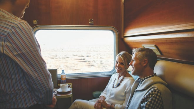 Gold Premium is a new style of travel, featuring newly designed, contemporary cabins that take inspiration from the Australian outback. Think walnut timber and polished brass, along with Indigenous prints on the upholstery. Choose between Gold Premium Twin or Gold Premium Suite, both of which come with premium inclusions.
