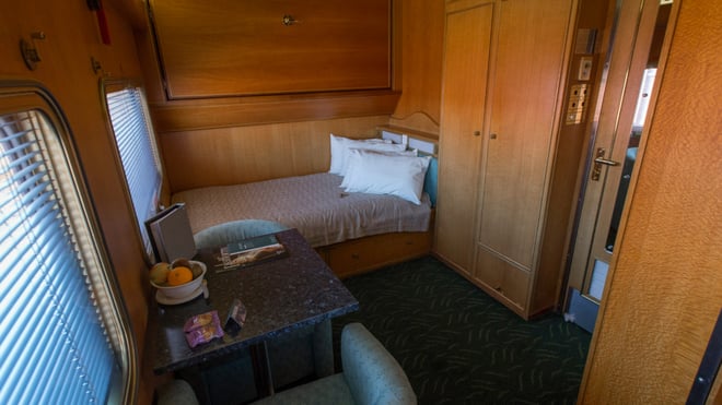 Gold offers a comfortable sleeper cabin featuring private en suite and upper and lower berths that convert to a three-seater lounge by day