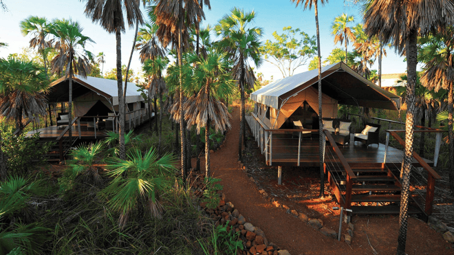After breakfast we'll drive deeper into El Questro wilderness park to Chamberlain Gorge, a beautiful three-kilometre long fresh waterhole bound by towering escarpment. Enjoy a 90-minute gorge cruise and feed some of the cheeky Archerfish before visiting Zebedee Thermal Springs for a swim in the crystal-clear water. Nestled against a rocky range and surrounded by palms, the Springs are one of the highlights of any visit to El Questro. Enjoy some relaxing time here before visiting the station township, the hub of El Questro. This afternoon, there is the option to set off on a guided walk up to the stunning Emma Gorge waterfall (three hours return - a good level of fitness required, but well worth it). A swim here is a highlight of any visit to El Questro, so be sure to bring your swimming attire. Stay: El Questro Emma Gorge Resort. Meals: B.L.D