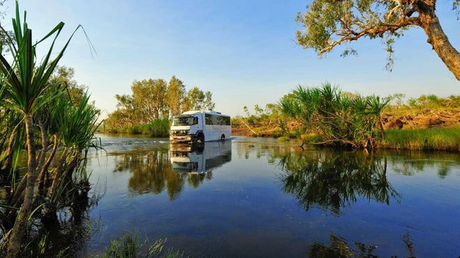 This morning we make our way back to the Gibb River Road before stopping to explore Galvans Gorge. After a swim we'll continue along the Gibb, heading past Mount Barnett and on to the Kalumburu Road where we begin heading north. Later this afternoon we break our journey for an overnight stop at Drysdale River Station, which runs 9,000 head of cattle across more than 1 million acres. Here we spend the night in comfortable station cabins with private ensuite bathroom facilities. Stay: Drysdale River Station. Meals: B.L.D