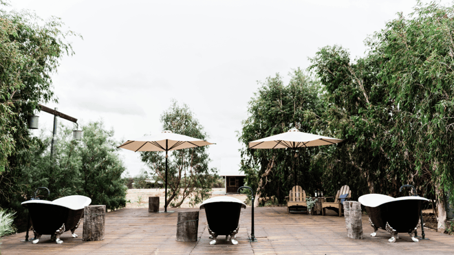 A highlight of your stay is sure to be an indulgent soak in a traditional claw-foot bath on our exclusive outdoor bath terrace shared with guests staying in the Slab Huts.