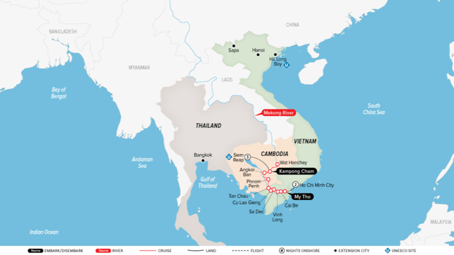 Two of the most beautiful, historic and friendly places in all of Asia, dynamic Vietnam and pastoral Cambodia are intriguing studies in contrast. Each possesses its own unique charm and social traditions, its own tragic history and complex past. In many ways, a visit here is less about the sights you see than it is about the people you meet and the experiences you have along the way.