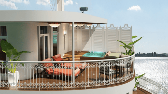 Debuting on January 3, 2020, the Mekong Jewel will be the newest and most luxurious ship on the Mekong river. This all-suite Super Ship will include two dining venues: one main restaurant and an al fresco eatery on the upper deck. The Mekong Jewel will replace the Mekong Navigator and is being constructed with sustainable, eco-friendly materials, and will feature a swimming pool, spa, sauna and steam room, gym, hair salon, nail bar, two lounges and a library.