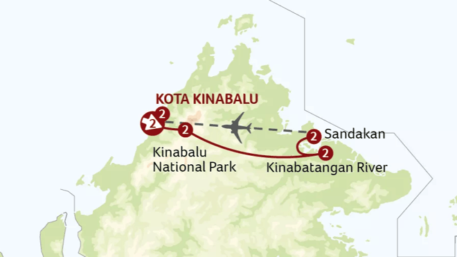 Return to civilisation for a tour of Sandakan. Religious relics, colonial mansions, and reminders of World War II dot the city, which has grown on trade. We visit the market and see the colourful interior of the magnificent Chinese Temple, before heading to Sim Sim, where the stilt houses of local tribes sit above the water. We transfer to the airport for our flight to Kota Kinabalu and our luxury property close to the tropical forest.
