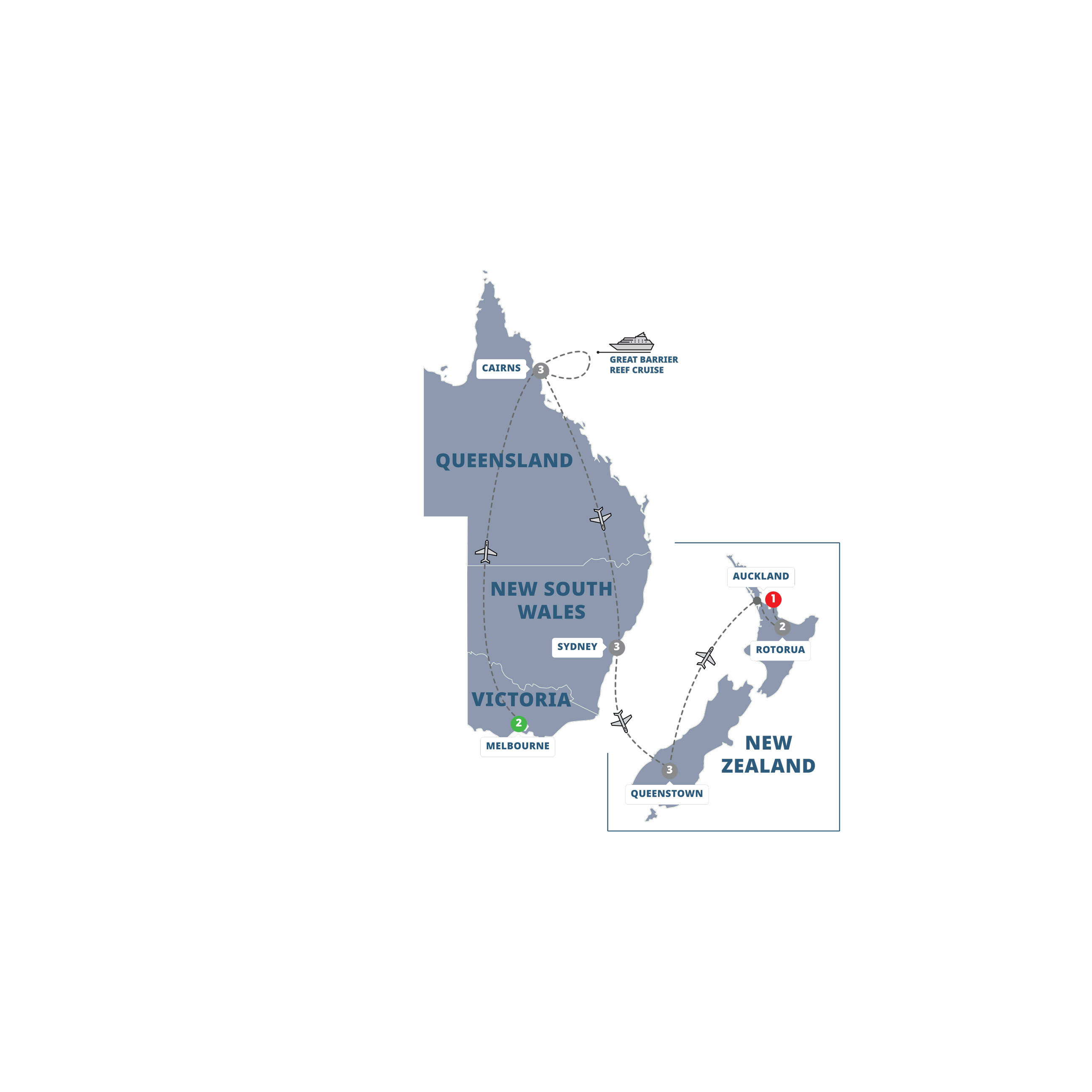 Your perfect two-week introduction to all the must-sees awaits on this Australia and New Zealand tour. Get out on the water at the Great Barrier Reef. Explore wildlife sanctuaries and scenic rainforests topped off with moving Maori villages, glittering glowworm caves, and a Queenstown adrenaline rush in epic New Zealand.
