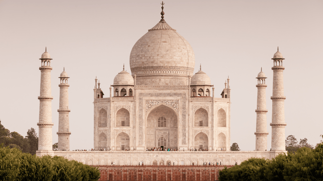 This morning we board the Shatabdi train to Bharatpur and drive into Agra - the final apex of the Golden Triangle. After a traditional thali lunch, we take a guided tour of the city. Agra is best known for the Taj Mahal, and while it remains the star of the show, the former capital of the Mughal empire has more imperial treasures in its trove. We begin at the UNESCO-listed Agra Fort. Begun in 1565 by the great Mughal emperor Akbar, this vast red sandstone fort was finished over successive reigns by his grandson and great-grandson. A proper family home, the finished result is 2.5km long and 21m high. In comparison to its indomitable size, we also visit the nearby tomb of I'timād-ud-Daulah (known as the 'Baby Taj') - a royal tomb built in the same style as the Taj Mahal but a fraction of the size. There’s an optional excursion this evening to watch the Mohabbat the Taj show.