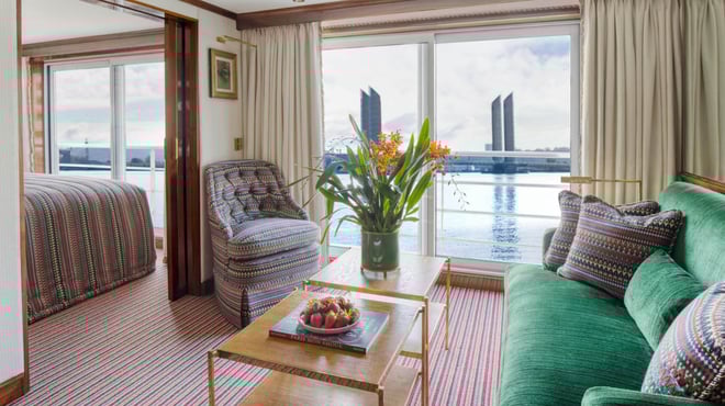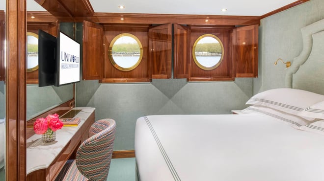 In addition to the public spaces, the S.S. Bon Voyage features four new spacious suites, and every stateroom has received an exquisite redesign with cool marble bathrooms and unique features.