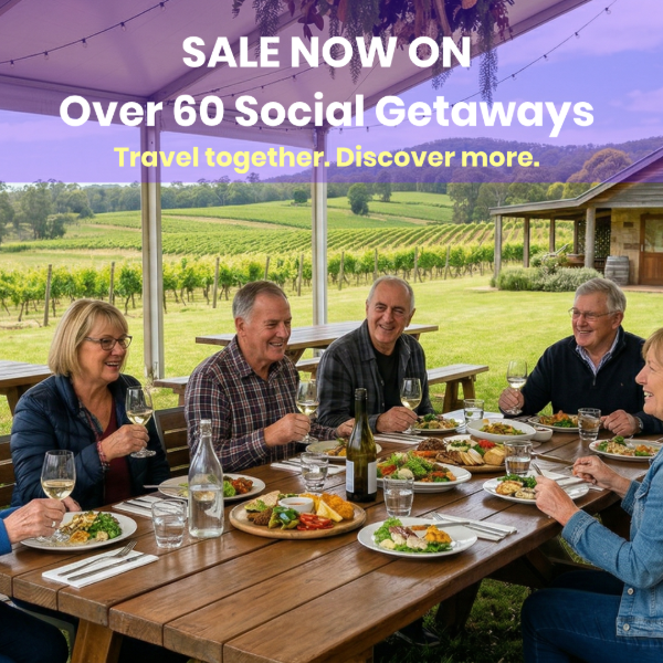 Discover our specially curated Over 60s Social Getaways, designed for connection, fun, and exploration. For a limited time, enjoy up to $400 per person off selected tours, from relaxing coastal cruises to vibrant social getaways. Don’t miss this chance to travel with like-minded adventurers and create unforgettable experiences.